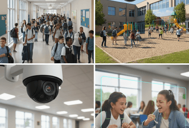 Instalação de câmeras para proteger alunos e patrimônio escolar.