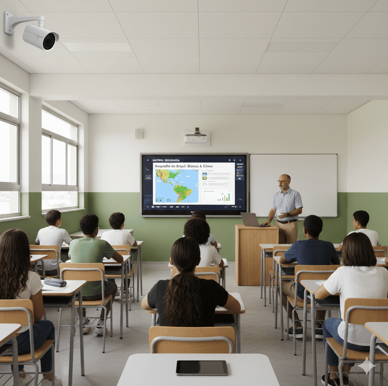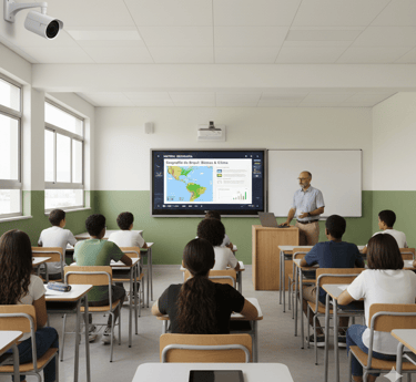 Salas Multimídia Inteligentes: Projetamos espaços educativos equipados com projetores de última geração, lousas interativas e infraestrutura de rede robusta para potencializar o ensino.
